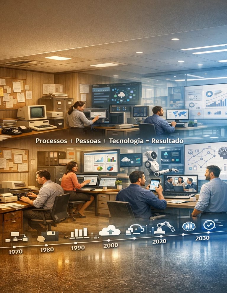 Trabalhamos de forma integrada em processos, pessoas e tecnologia, organizando rotina, responsabilidades e indicadores para a PME ganhar controle e previsibilidade.