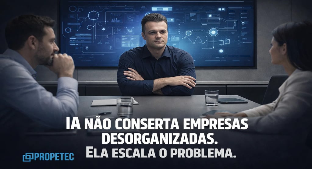 Porque IA não entra numa empresa e arruma a bagunça. Ela não tem essa função. Ela entra, olha ao redor, e começa a trabalhar com o que encontra. Se o que ela encontra é desorganização, processos que não existem, liderança confusa e equipe sem o menor preparo pra operar o que é novo, ela vai automatizar exatamente isso.